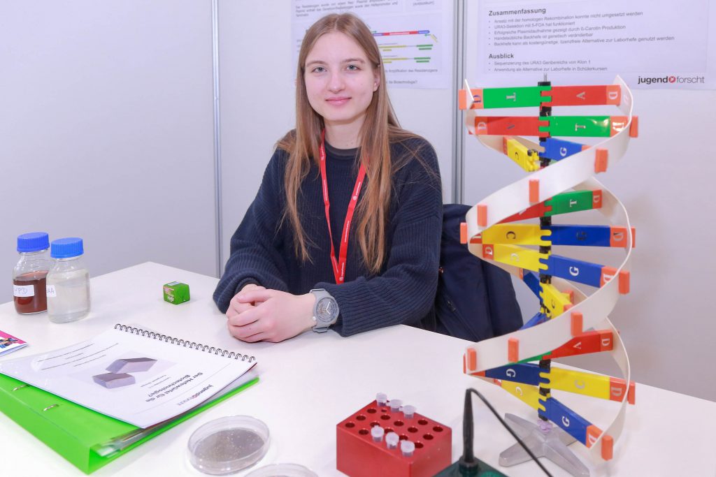 Backhefe so zu manipulieren, dass sie die Gene für einen fremden Stoffwechselweg aufnehmen und exprimieren kann. In Laborhefen werden fremde Stoffwechselwege eingebaut, indem oft ein fehlendes überlebenswichtiges Gen mit Hilfe eines Plasmids, das auch den fremden Stoffwechselweg codiert, eingebracht wird. Diese Methodik wollte ich auch an Backhefe testen. Dazu wurde zunächst in einer Hefezelle das essenzielle URA3 Gen ausgeschaltet. Anschließend wurde die Hefe mit dem Stoffwechselweg für β-Carotin transformiert. Die entstandenen Hefekolonien waren, im Gegensatz zu den nicht transformierten weissen Hefekolonien, vom in der Hefe produzierten β-Carotin orange eingefärbt. Dies zeigt, dass auch die normale Backhefe aus dem Supermarkt für biotechnologische Zwecke eingesetzt werden kann.