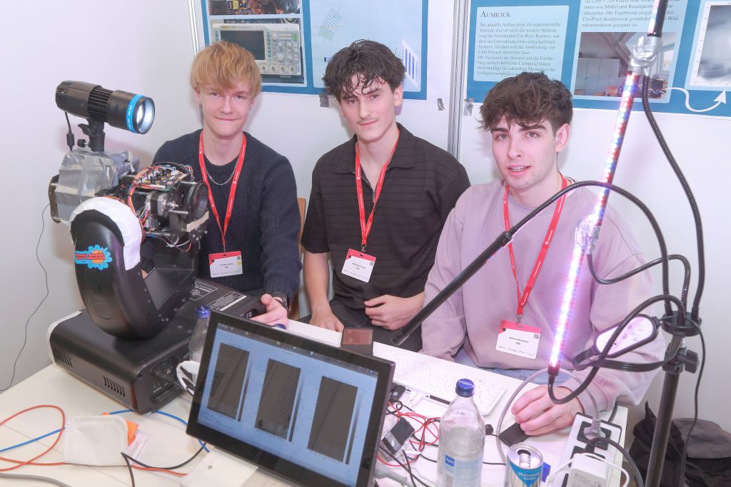 In diesem Projekt entwickeln wir eine Kamera, welche mithilfe von einem Moving Head, einem Laser und einer Fotodiode die Ausbreitung von Licht mit 8 Milliarden Bildern pro Sekunde aufnehmen kann. Das Ziel der ersten Projektphase ist eine funktionierende Kamera Plattform aufzubauen und ein Bild mit einer einzelnen Fotodiode zu konstruieren. Langfristig soll das System zu einer Kamera, welche Lichtgeschwindigkeit bildlich festhält ausgebaut werden. Diese Vision ist jedoch nicht Bestandteil der aktuellen Wettbewerbsrunde. Unser Fokus lag auf der Grundlage: Steuerung, Elektronik, Datenerfassung und Bildkonstruktion. Jedoch sind wir inzwischen weitergekommen und befinden uns in der Vorbereitung für Phase zwei, wir entwickeln die technische Grundlage für die Lichtgeschwindigkeitsmessung durch neue Komponenten und Ideen.