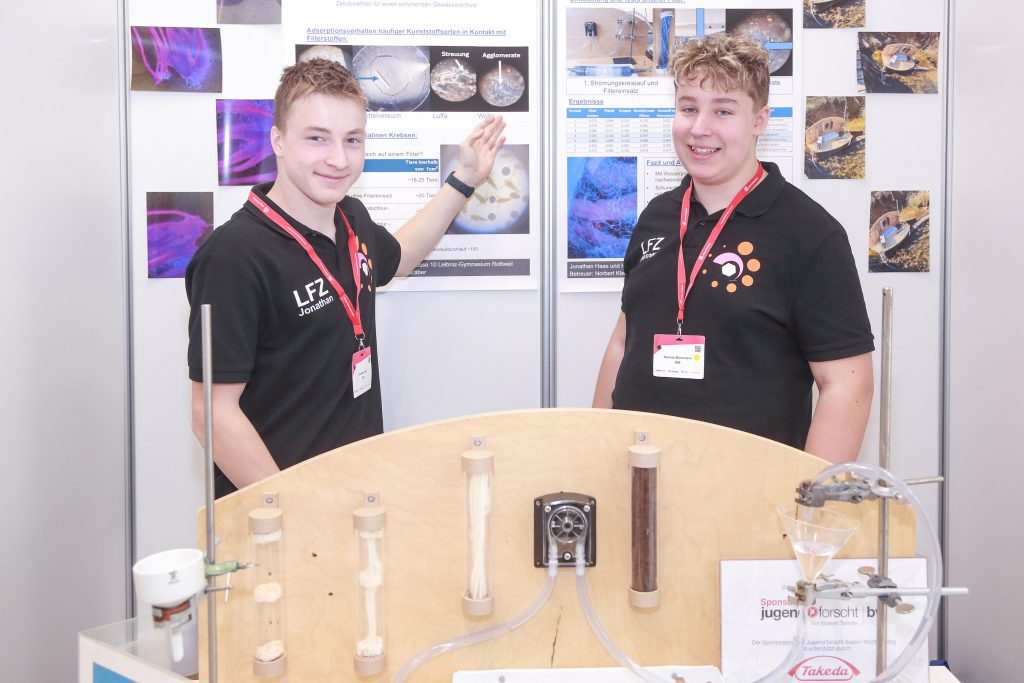 Wir arbeiten an einer innovativen Filteranlage, die Mikroplastik effektiv aus Gewässern entfernen kann – und dabei gleichzeitig besonders schonend für Kleinstlebewesen ist. Unsere Idee basiert auf dem Gerüst der Luffa-Gurke, dessen Zellulose Mikroplastikpartikel mechanisch binden kann. Dabei entstehen Agglomerate, in denen sich Tausende Partikel festsetzen, ohne dass Klein- und Kleinstorganismen beeinträchtigt werden. Um die Filter weiterzuentwickeln, nutzen wir einen 3D-Drucker und Zellulosefilament, mit dem wir eine transparente Versuchsanlage bauen. So können wir Strömungsverhalten, Filtrationsrate und das Verhalten von Wasserorganismen gezielt untersuchen.