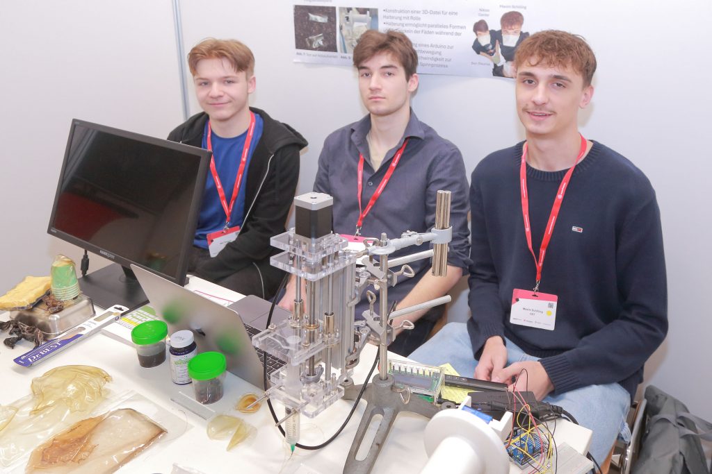 Unser Projekt beschäftigt sich mit der Herstellung von Chitosan-Fäden und Flächen aus biologischen Rohstoffen wie den Schalen von Shrimps und Waffenfliegen. Wir untersuchen mögliche Extraktionsschritte des Ausgangsmaterials sowie Verfahren zur Herstellung der Endprodukte. Ziel ist es, nachhaltige Alternativen zu herkömmlichem Plastik zu entwickeln und innovative Fäden für Forschung, Textil- und Verpackungsindustrie bereitzustellen.