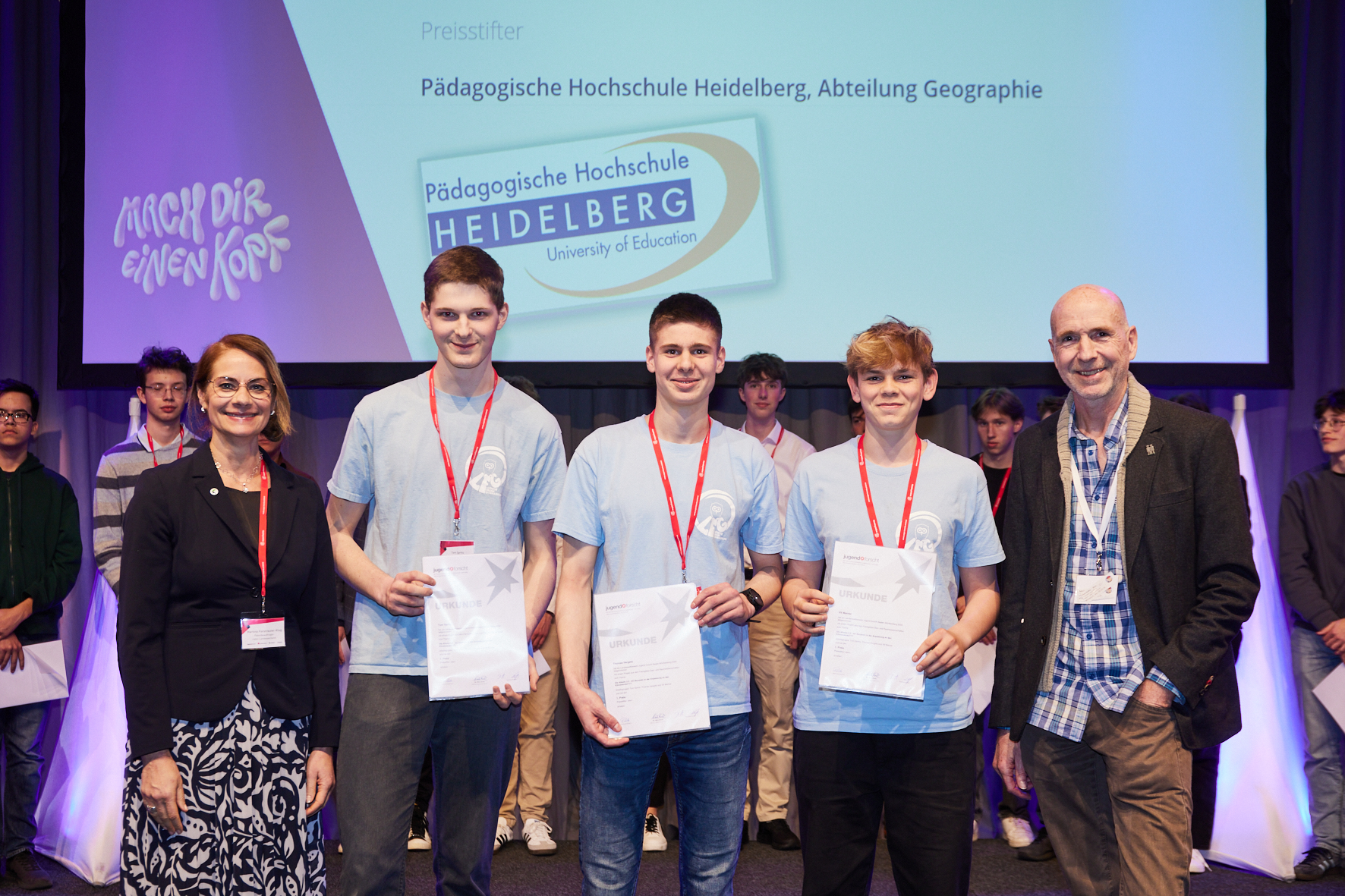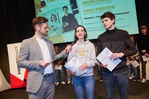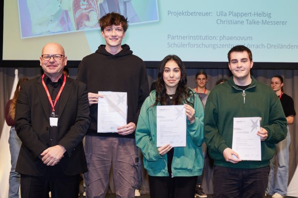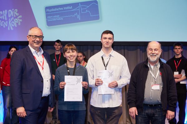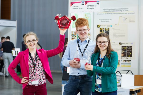 In diesem Jahr geht der Preis an das Projekt Salamandra salamandra terrestris – Populationsbetrachtung in 10D von Karolin, Simeon und Finja Egle vom Salem Kolleg Überlingen und Otto-Hahn-Gymnasium Tuttlingen aus . Herzlichen Glückwunsch!