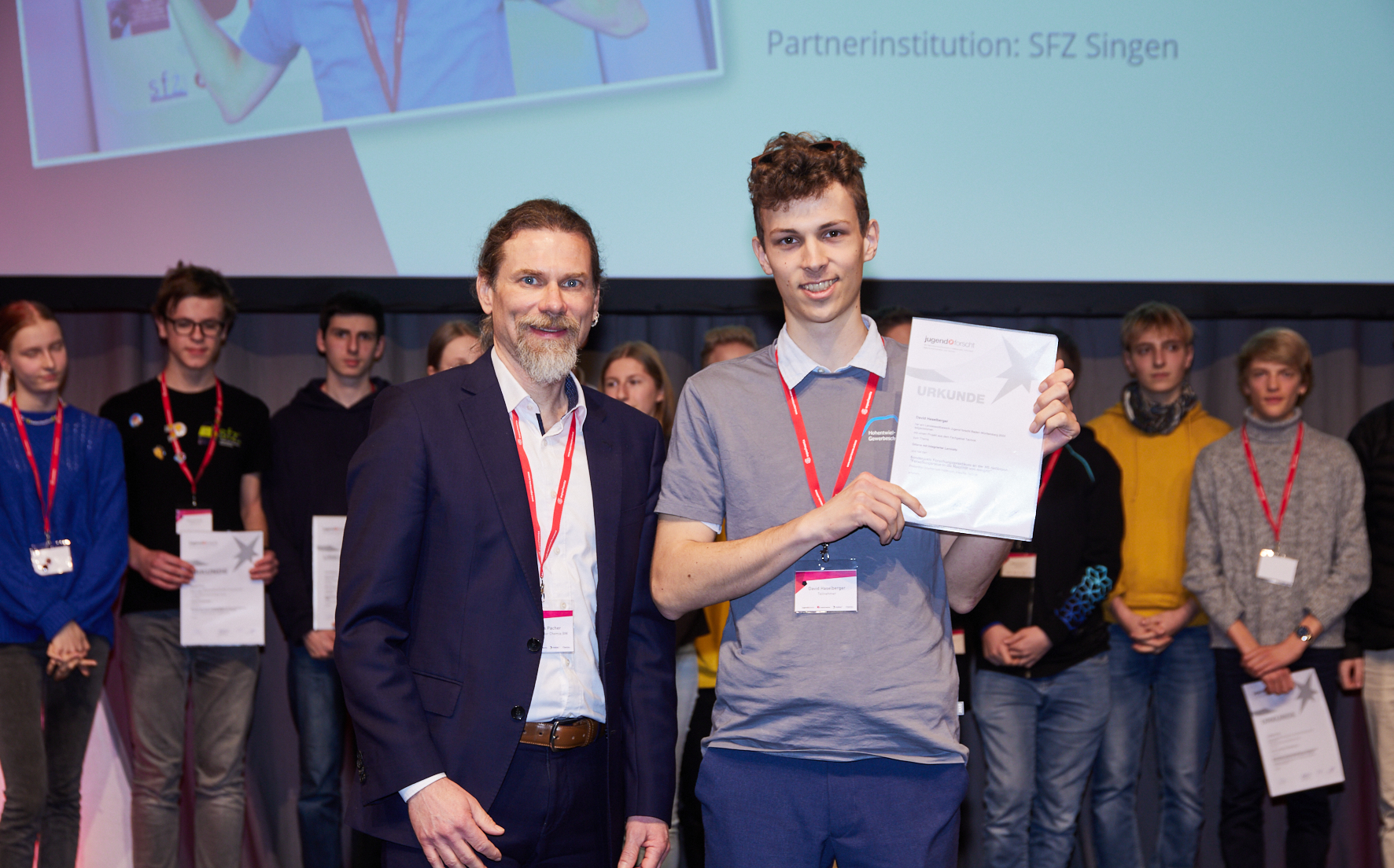 Preisträger/-innen: Den Preis erhalten die Projektbetreuenden der Landessiegerprojekte.