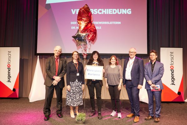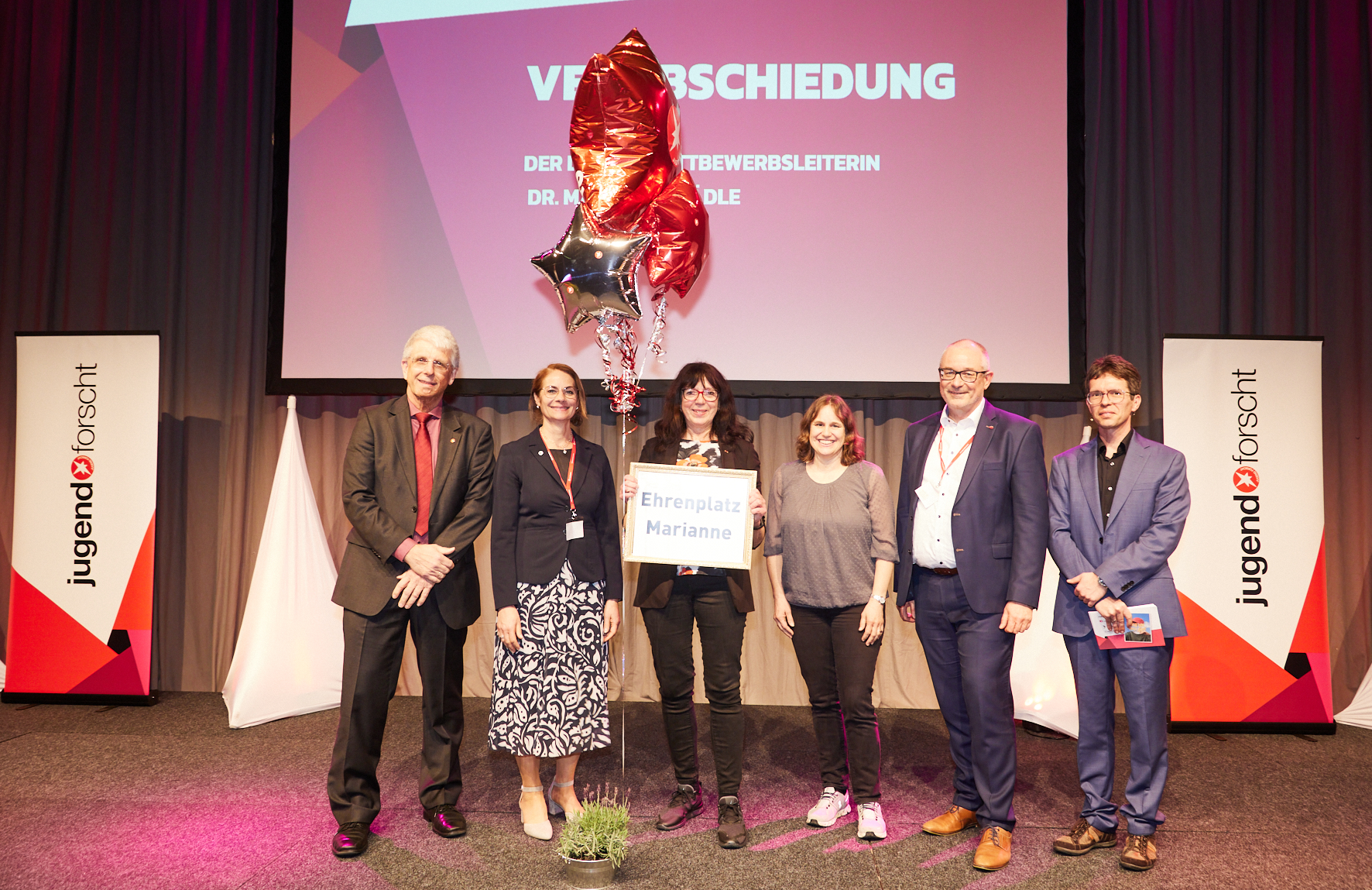 v.l.n.r.: Dr. Tobias Pacher (Chemie.BW), Martina Forstreuter-Klug (natec Landesverband), Dr. Thomas Wendt (experimenta gGmbH), Heiko Stangl (Sponsorpoolverwalter), Dr. Marianne Rädle (Wettbewerbsleiterin Jugend forscht Landeswettbewerb BW)
